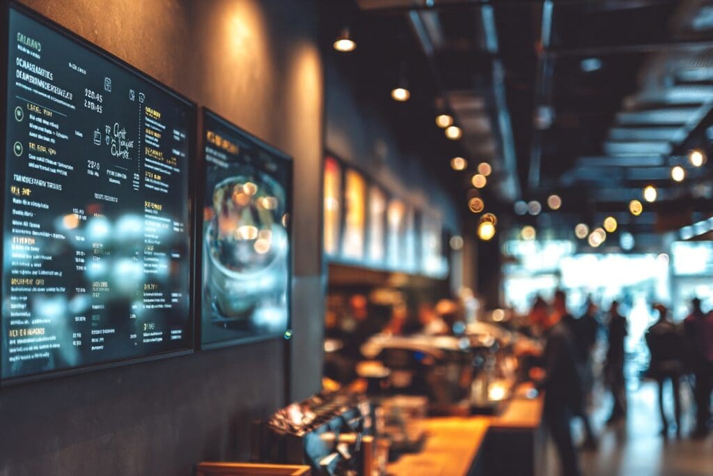 | Best for | Indoor food service — cafés, restaurants, canteens | Outdoor, drive-thru, video walls, large venues |